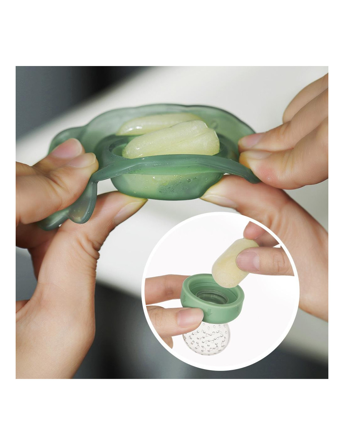 Freeze-N-Feed Fruchtsauger und Eiswürfelform Mini Set - Olivgrün
