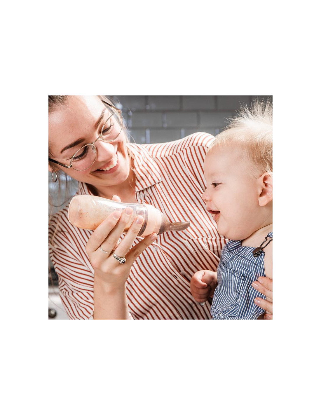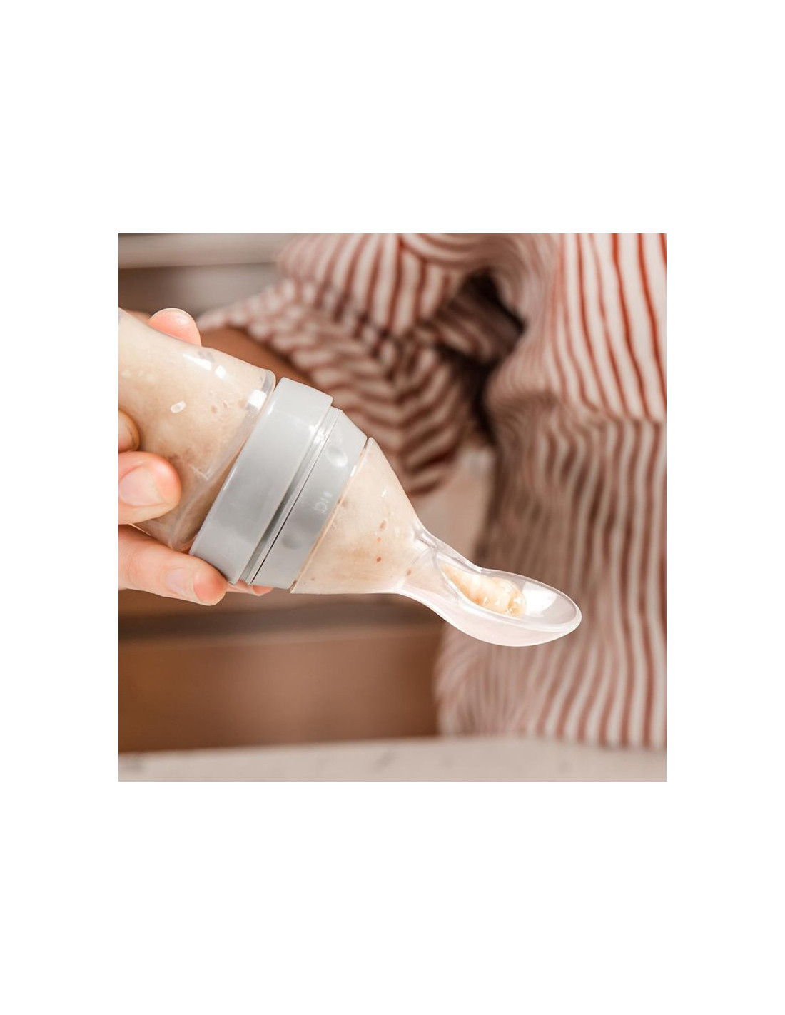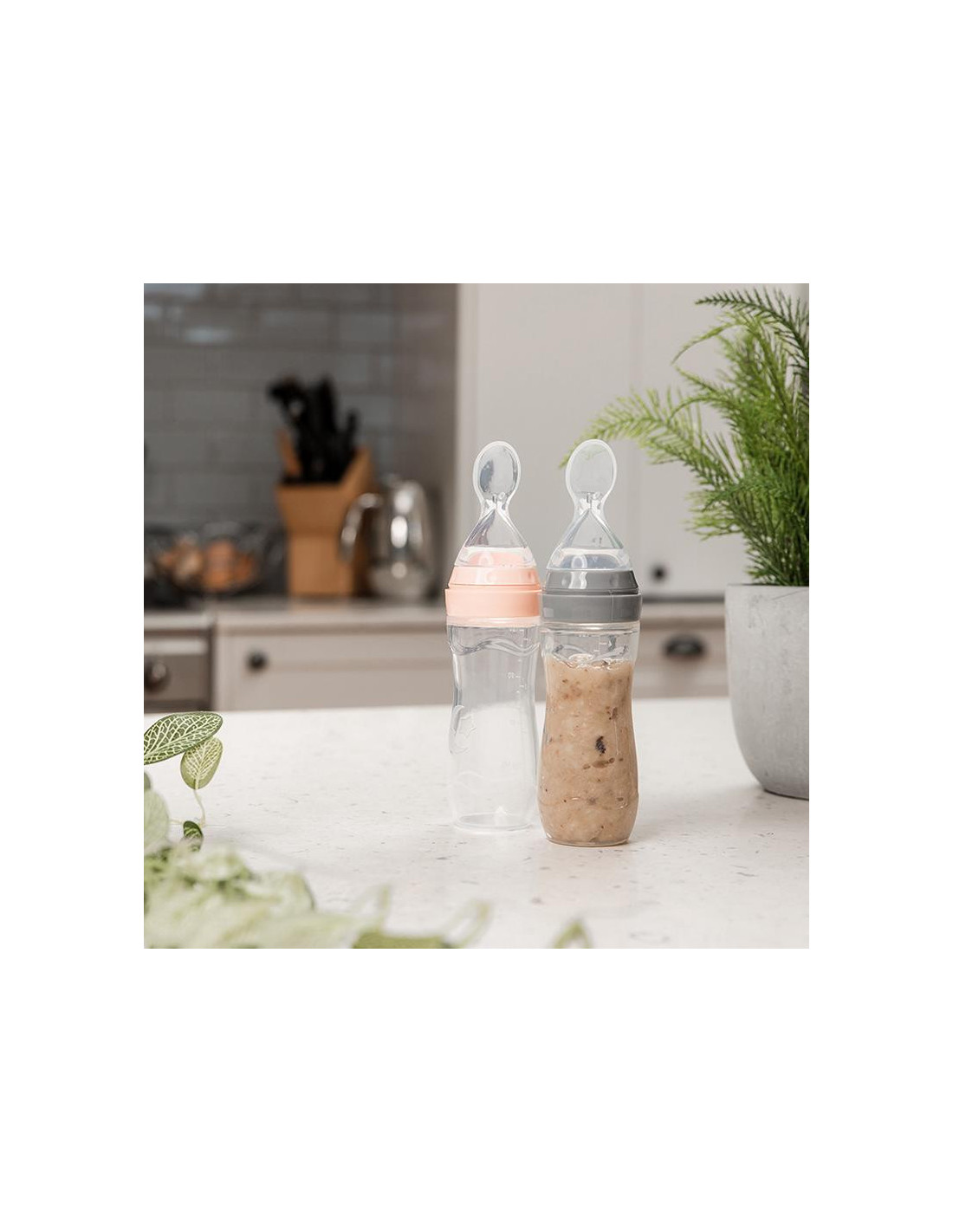 Squeeze Fütter-Flasche mit Löffel - Peach